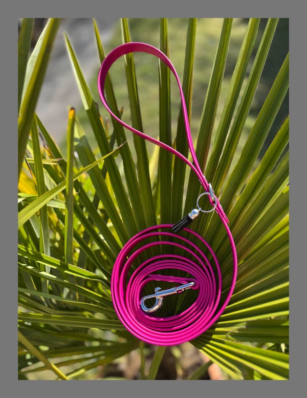 Stijlvolle en praktische lijn. Biothane lijkt erg op Leer, het is supersterk, snijd niet in je handen en neemt geen water op! Het is eenvoudig schoon te maken met een vochtige doek.