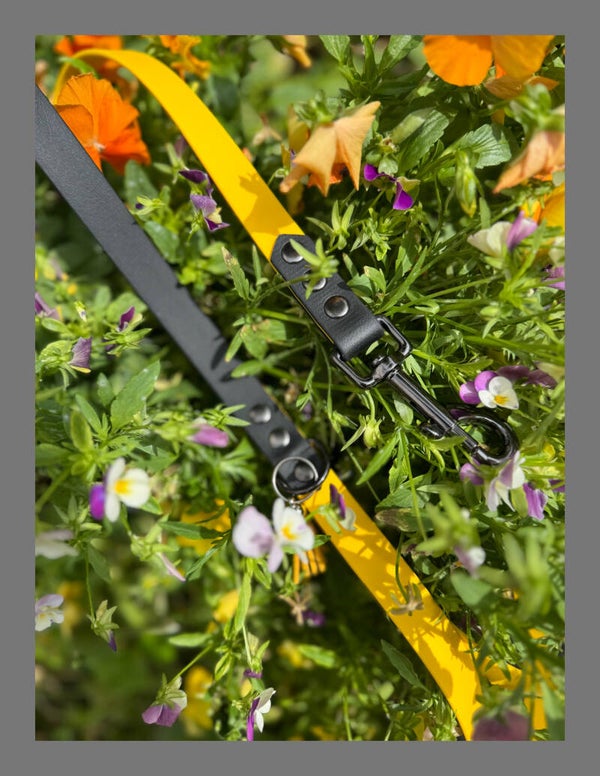 Stijlvolle en praktische lijn. Biothane lijkt erg op Leer, het is supersterk, snijd niet in je handen en neemt geen water op! Het is eenvoudig schoon te maken met een vochtige doek.