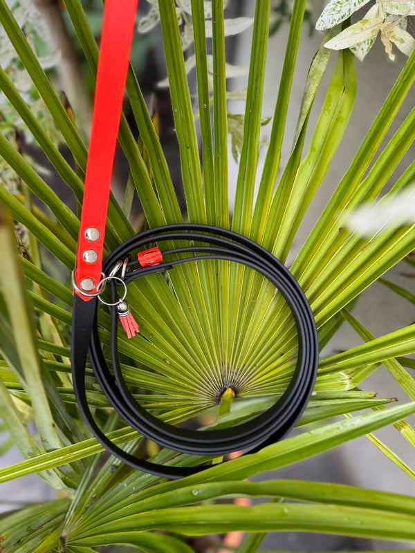 Stijlvolle en praktische lijn. Biothane lijkt erg op Leer, het is supersterk, snijd niet in je handen en neemt geen water op! Het is eenvoudig schoon te maken met een vochtige doek.