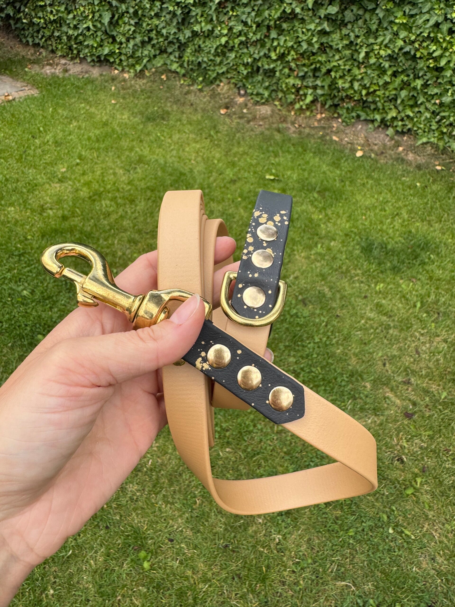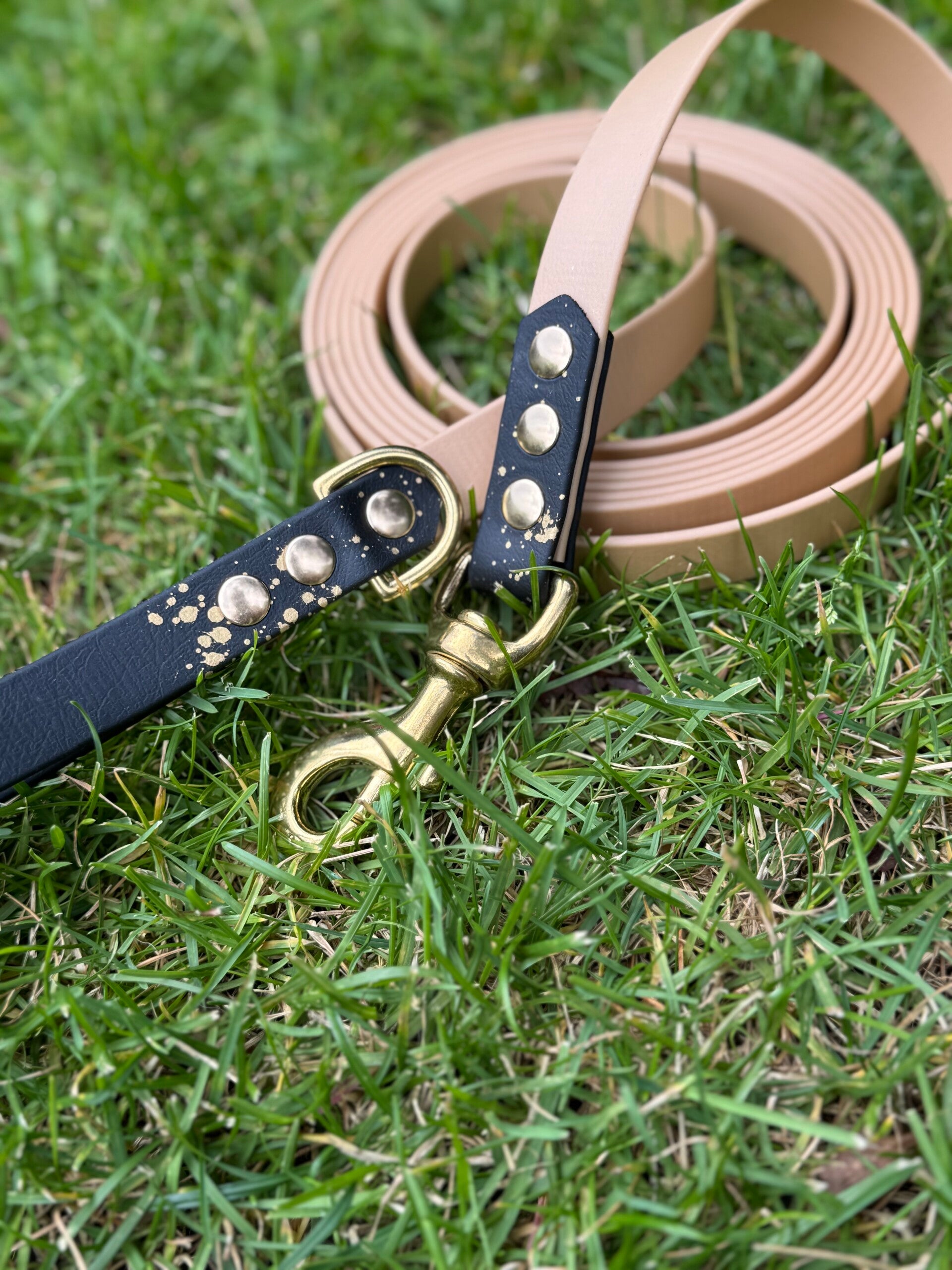 Stijlvolle en praktische lijn. Biothane lijkt erg op Leer, het is supersterk, snijd niet in je handen en neemt geen water op! Het is eenvoudig schoon te maken met een vochtige doek.