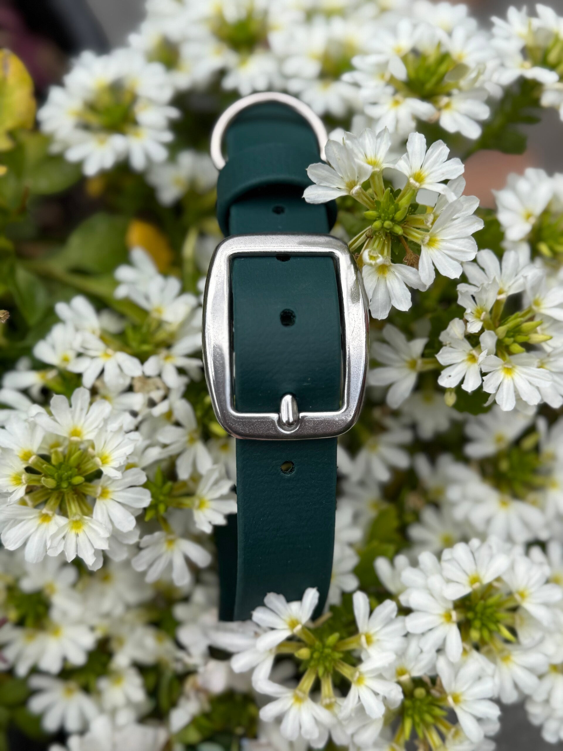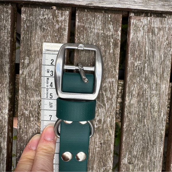 Donkergroen, RVS afwerking. 25mm breed (12-35kg) 41-48,5cm.