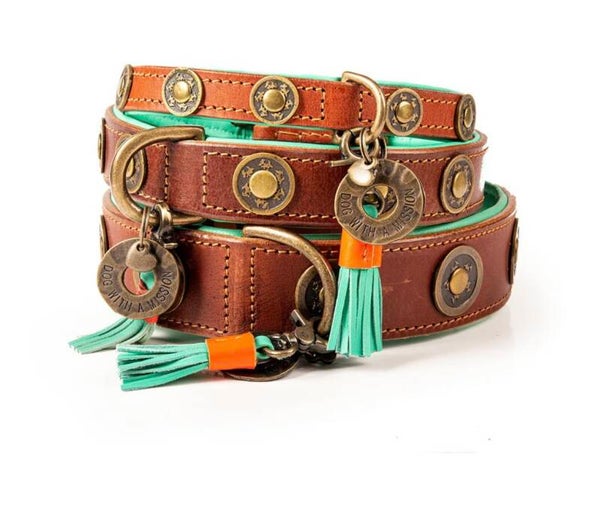 Donkerbruin met DWAM turquoise, perfect voor elke hond. Met de Urban wordt je hond nog cooler!